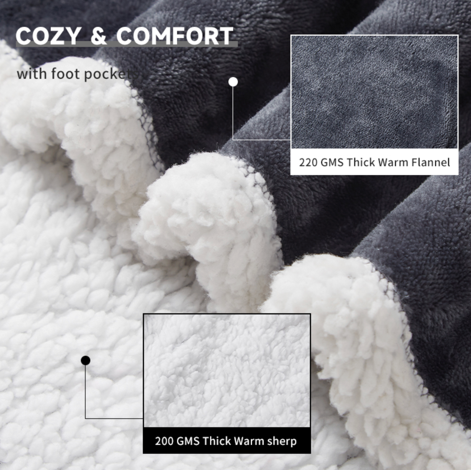 Meet the HeatCloud™ Wearable Blanket — your new favourite way to relax. Designed with an ultra-soft flannel exterior and a gentle, plush sherpa lining, it wraps around you like a warm hug. Whether you're watching TV, studying, or winding down after a long day, HeatCloud™ keeps you comfortable without weighing you down. It’s simple, stylish, and made for everyday coziness.